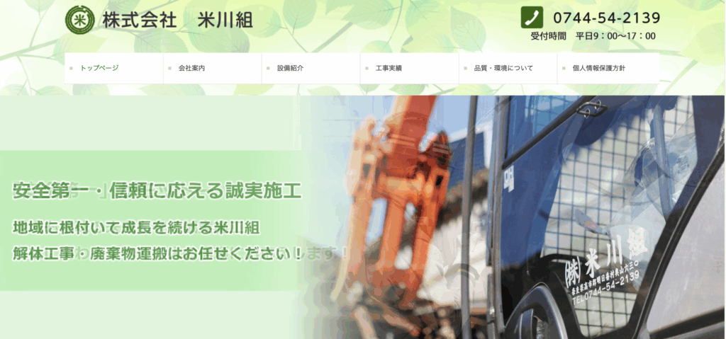奈良県高市郡明日香村に本社を置く株式会社米川組は、土木工事・建築一式工事、斫り・解体工事、産業廃棄物収集運搬業、アスベスト除去工事などを手掛ける地域密着型企業です。奈良県知事許可を保持し、安全と環境を重視した施工に取り組んでいます。同社は近隣住民や周辺環境への影響を最小限に抑える品質管理・環境配慮を徹底しており、地元での信頼も厚い企業です。