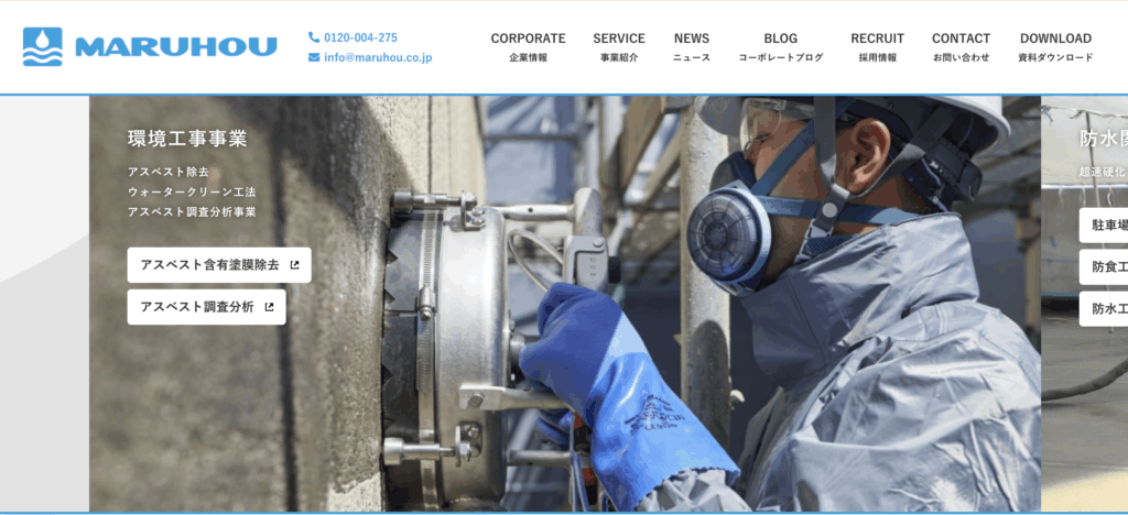 株式会社マルホウは1997年10月に設立された環境関連専門企業です。本社は愛知県に位置していますが、全国に支店・営業所があり、仙台支店は東北6県で活動しています。アスベスト除去工事および調査・分析業務をグループ体制で提供しており、ウォータージェットを活用した専用の「ウォータークリーン工法」は特許を取得しています。調査・設計・除去・下地処理・防水・防食工事など多岐に対応し、環境負荷軽減と安全性を重視した体制を整えています。