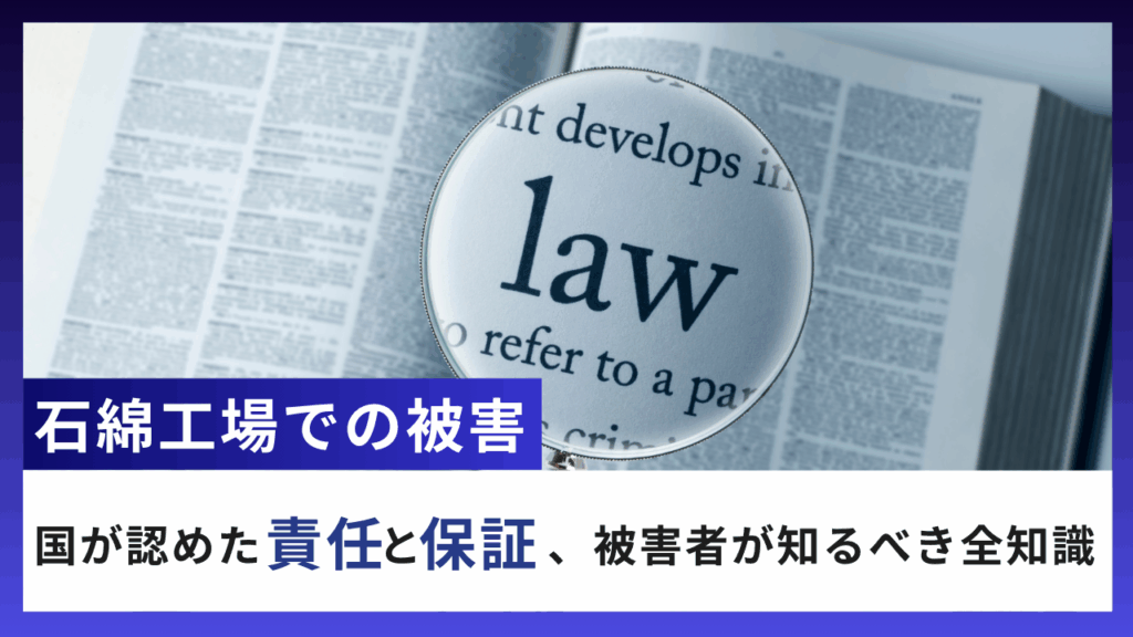 石綿工場での健康被害に対し、国や企業への責任追及がなされてきました。特に、平成26年(2014年)10月9日の最高裁判決は、石綿工場での被害に対する国の責任を明確に認め、その後の被害者救済に大きな影響を与えました。