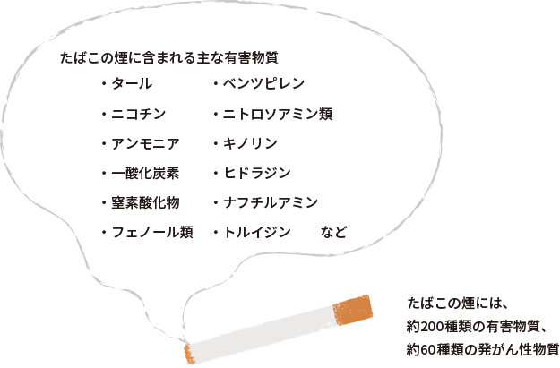 受動喫煙によって吸い込む煙には、喫煙者が直接吸い込む主流煙よりも多くの有害物質が含まれていることがあります。特に、換気の悪い空間での受動喫煙は、リスクをさらに高めるため、注意が必要です。