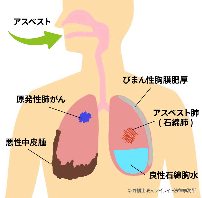 出典:弁護士法人デイライト法律事務所(不明)「アスベストで発症する病気とは?弁護士がわかりやすく解説」https://www.daylight-law.jp/asbestos/byouki/