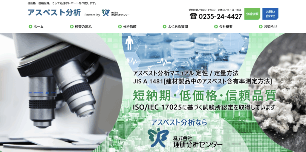 【山形県】株式会社理研分析センター|アスベスト調査・分析