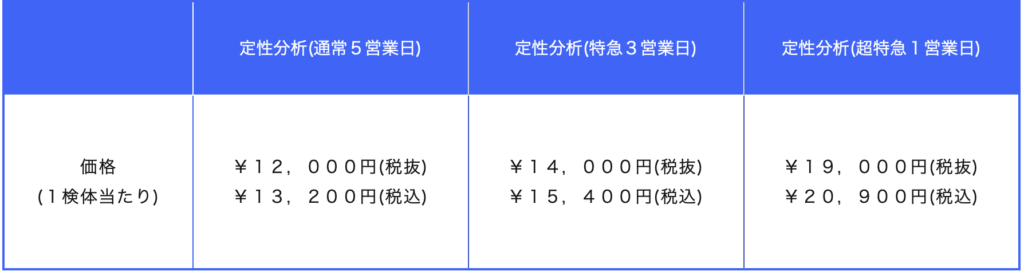 ・複数検体をまとめて調査する場合は、通常納期と組み合わせることで費用を抑えることが可能です。