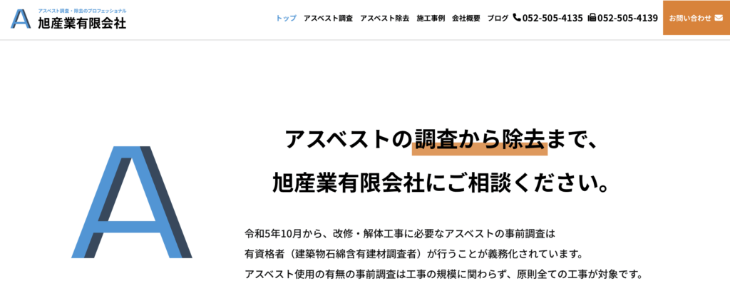 旭産業有限会社は、1995年創業の愛知県名古屋市西区を拠点とする環境・解体工事会社で、アスベスト(石綿)に関する調査から除去・解体まで一貫対応が可能です。有資格者(建築物石綿含有建材調査者・石綿作業主任者)による正確な事前調査と、官公署提出書類の作成・届出支援も実施しています。これまでに公共施設や工場、高校体育館など多様な実績を有しており、愛知・名古屋・岐阜エリアを中心に対応しています。安全対策や施工記録保持にも徹底した姿勢を持ち、信頼性の高いサービスを提供しています。