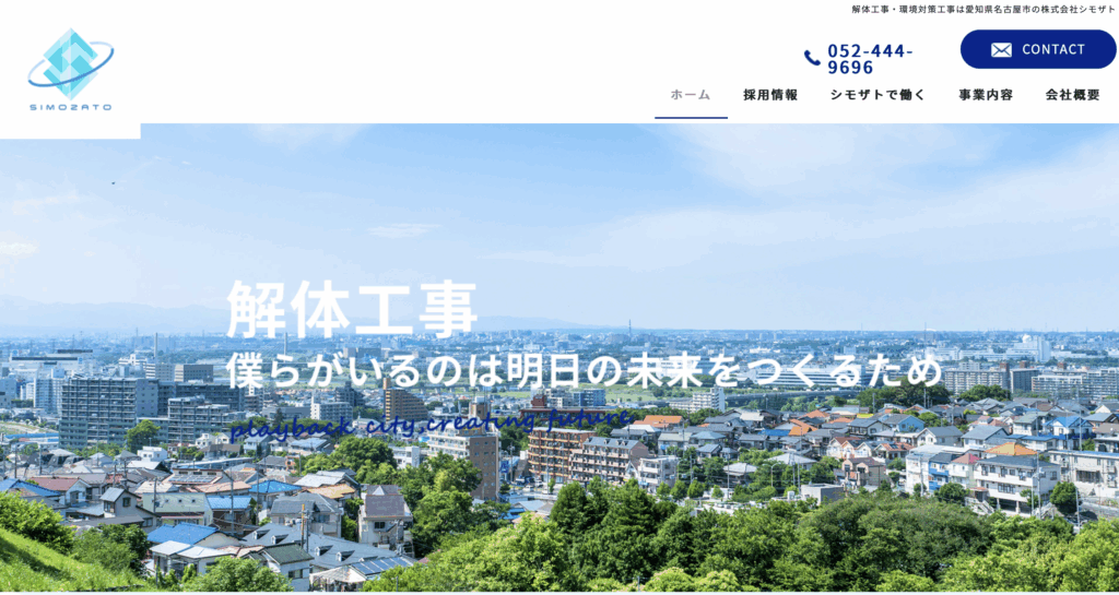 株式会社シモザトは、愛知県あま市に本社を持つ、平成27年設立の総合解体業者です。RC造・S造・木造を対象とした解体工事、アスベスト除去、ダイオキシン除去、ハツリ工事、ワイヤーソーイング工事、カッター工事などを中核事業として展開しています。少数精鋭でチーム力を強みとし地域密着の迅速対応を得意とし、安全管理と丁寧な施工を信条としています。